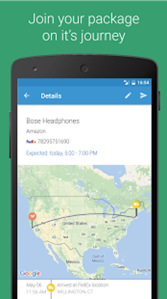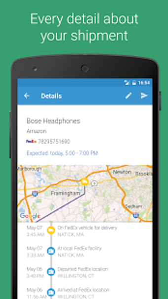 Denna paketspårningsapp låter dig se alla dina paket och leveranser på en skärm. Den visar statusen för varje försändelse, antalet dagar till leverans, spårningsnumret och platsen.